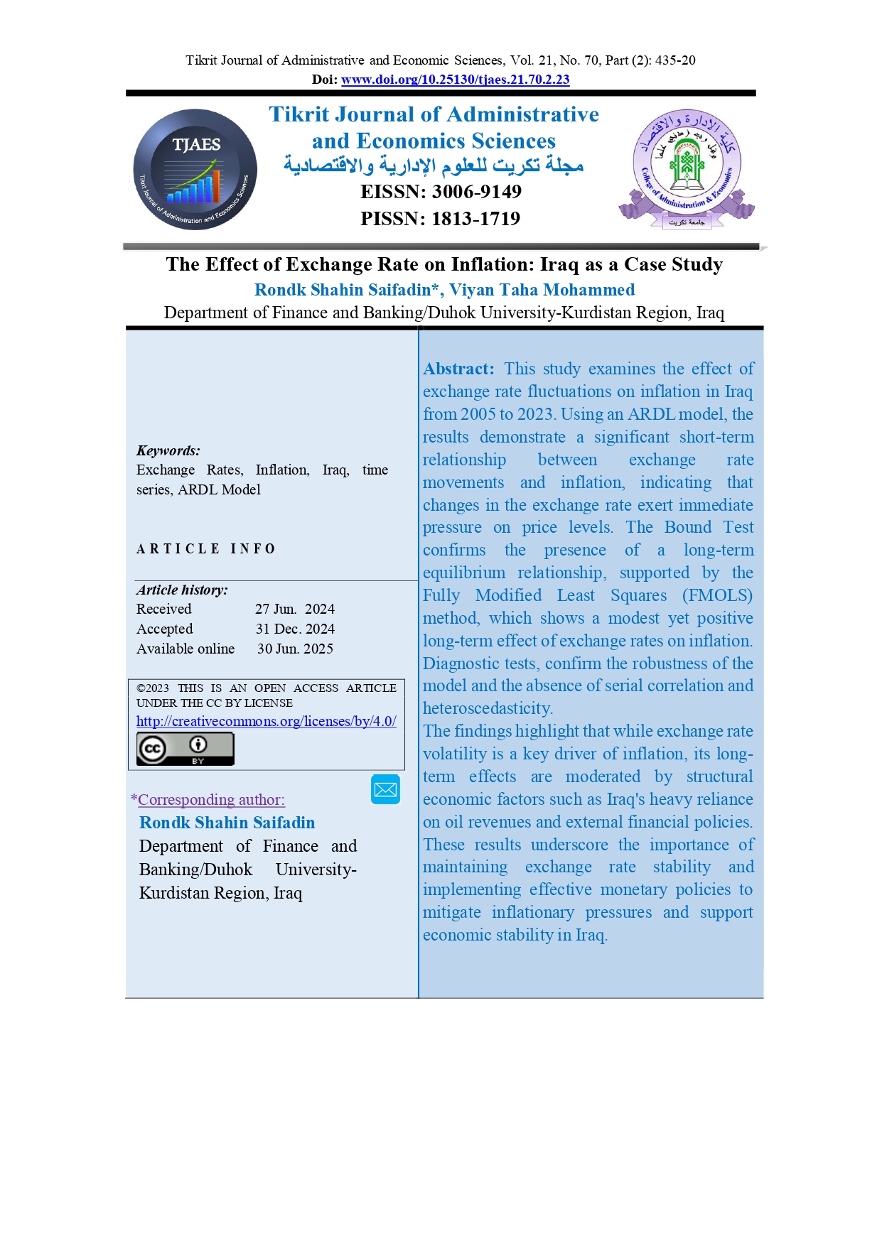 The Effect of Exchange Rate on Inflation: Iraq as a Case StudyAbstract views : 0 | PDF downloads : 0Page No.: 435-459 |