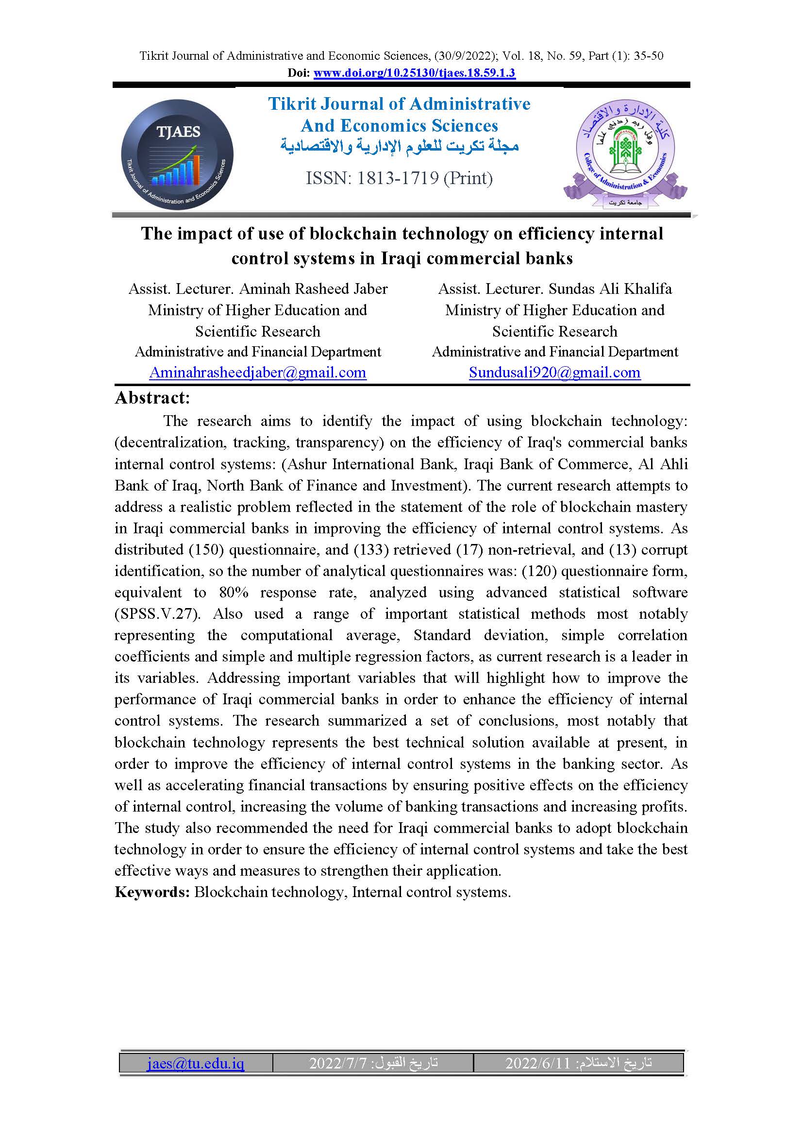 The impact of use of blockchain technology on efficiency internal control systems in Iraqi commercial banksAbstract views : 62 | PDF downloads : 53Page No.: 35-50 |