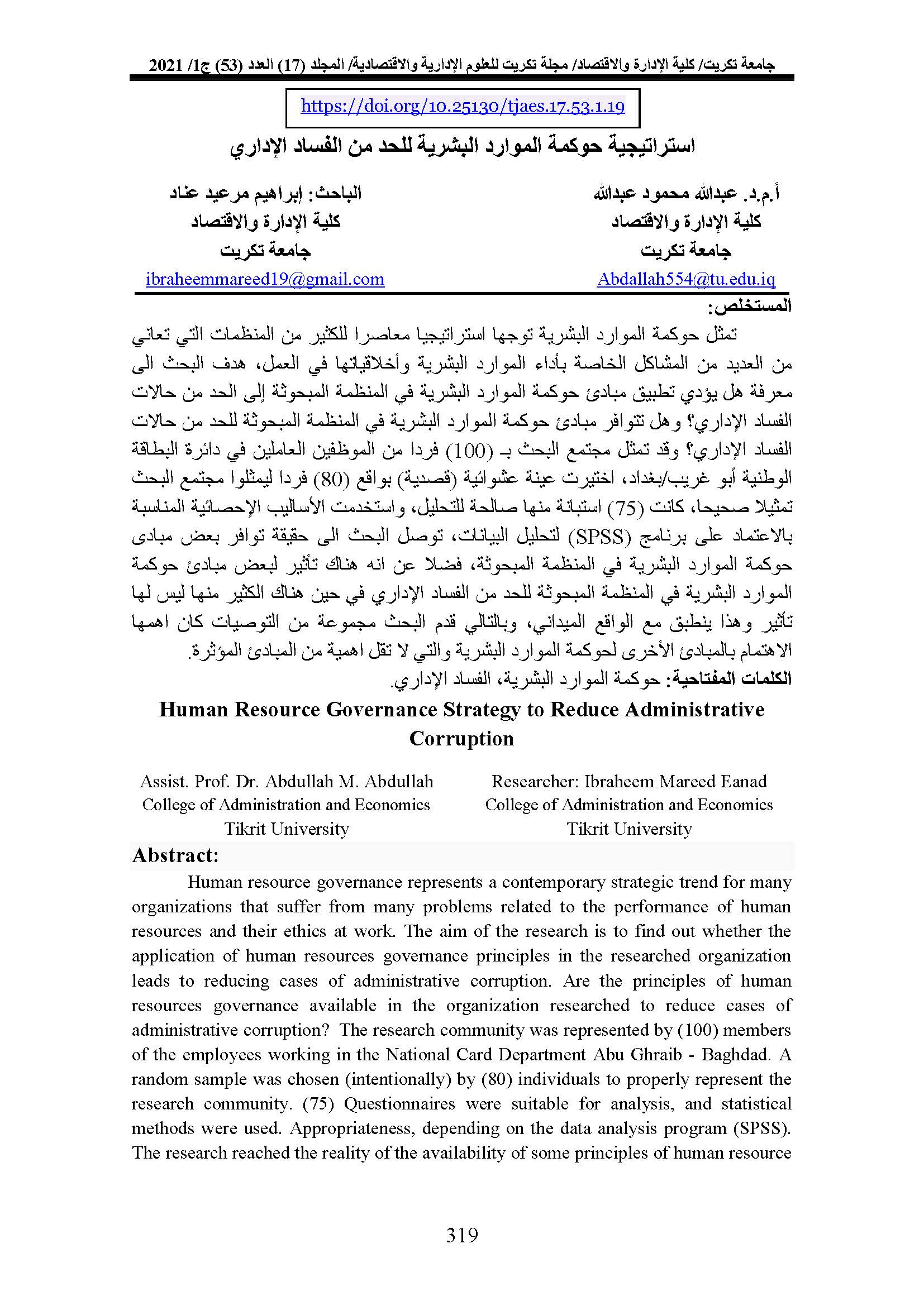 Human Resource Governance Strategy to Reduce Administrative CorruptionAbstract views : 0 | PDF downloads : 0Page No.: 319-338 |