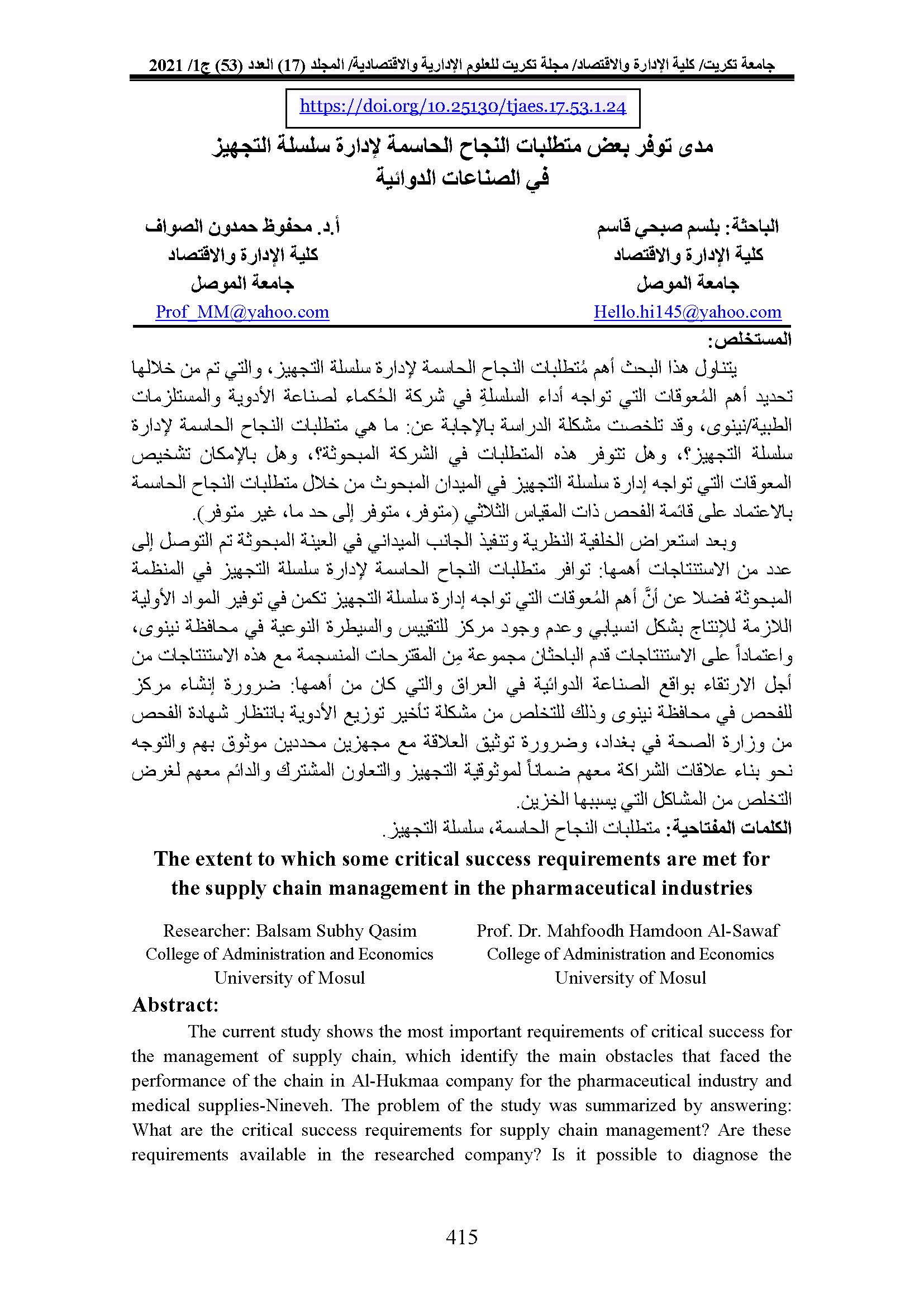 The extent to which some critical success requirements are met for the supply chain management in the pharmaceutical industriesAbstract views : 0 | PDF downloads : 0Page No.: 415-431 |