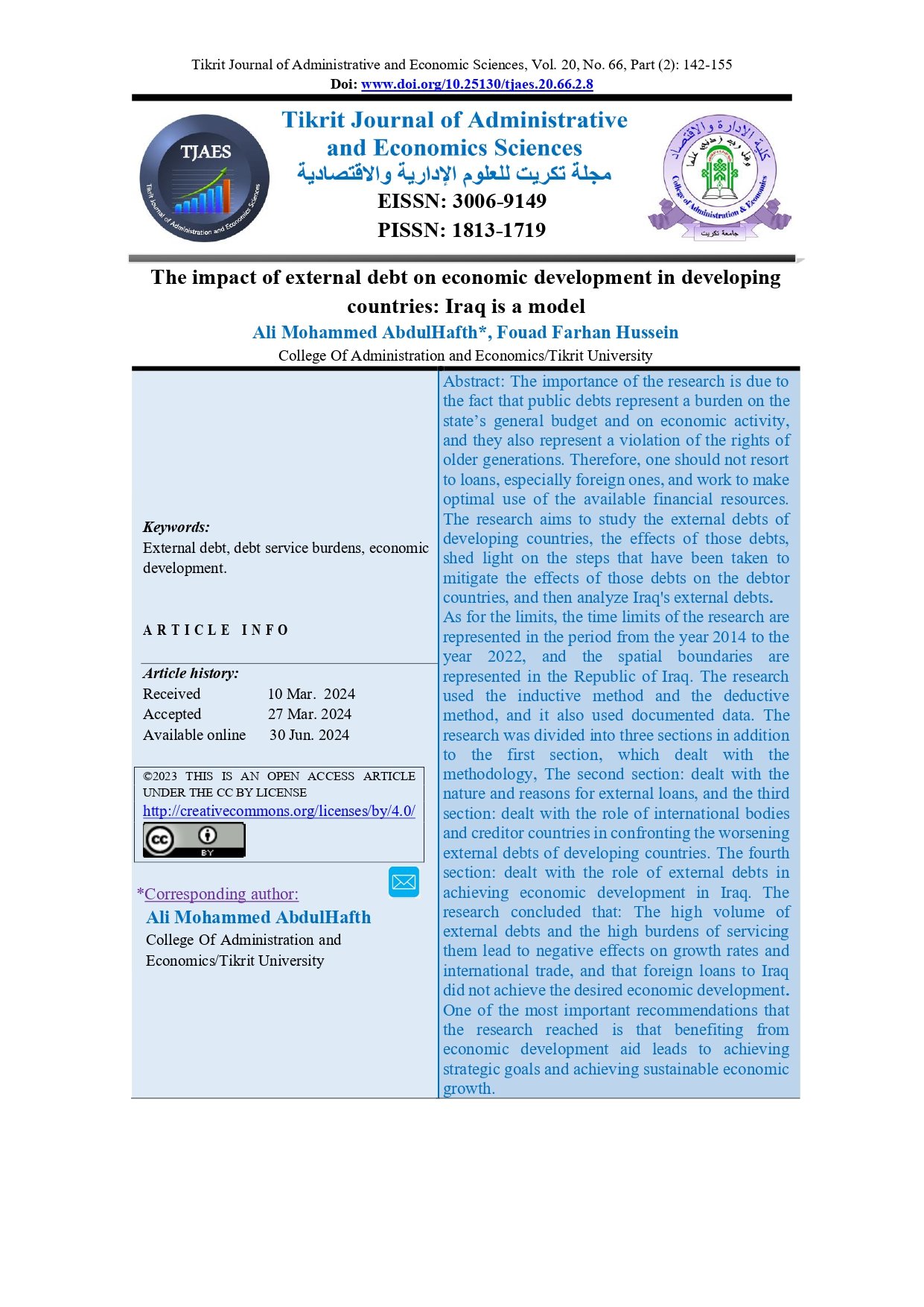 أثر الديون الخارجية على التنمية الاقتصادية في الدول النامية (العراق انموذجاً)