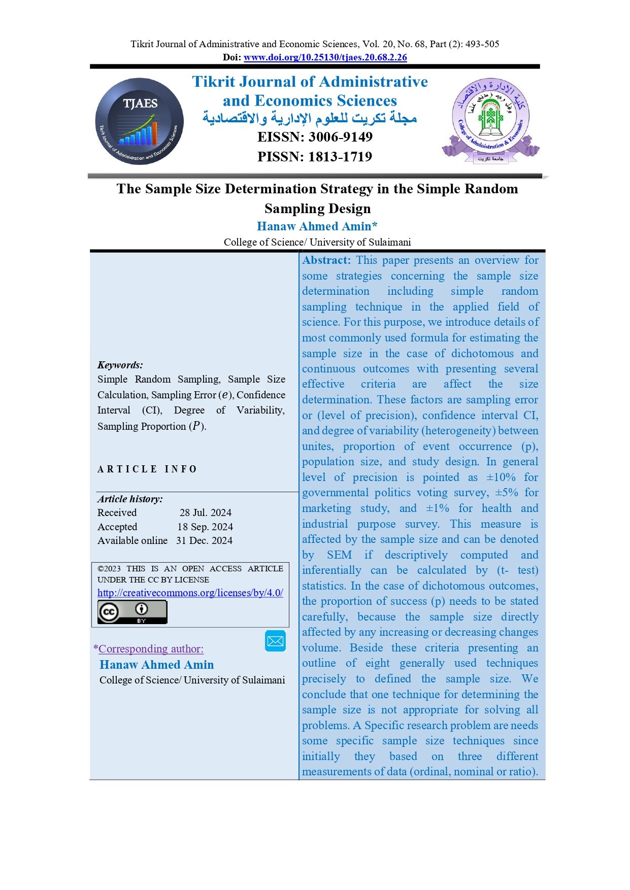 استراتيجية تحديد حجم العينة في تصميم المعاينة العشوائية البسيطة
