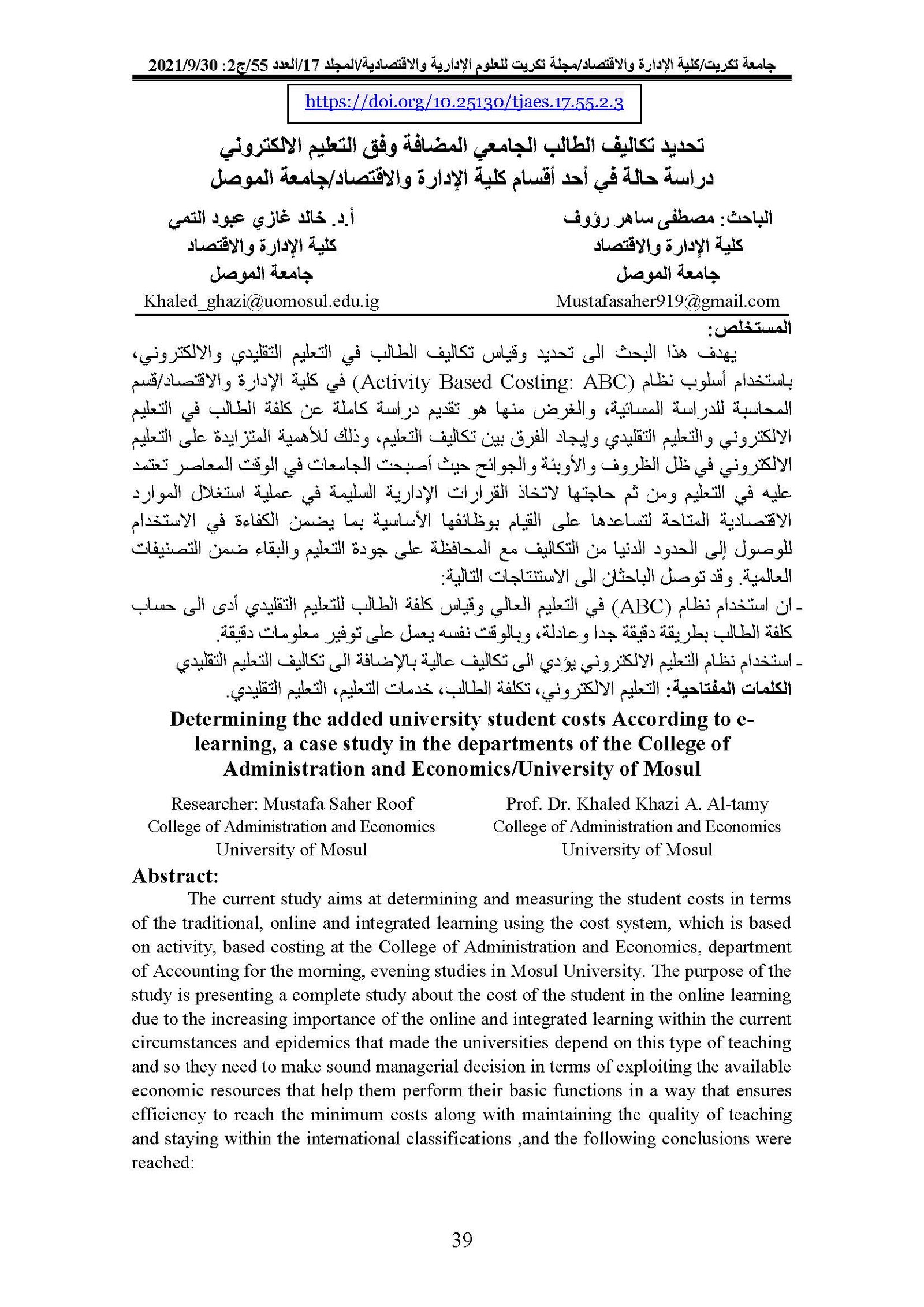 Determining the added university student costs According to elearning, a case study in the departments of the College of Administration and Economics/University of MosulAbstract views : 0 | PDF downloads : 0Page No.: 39-59 |
