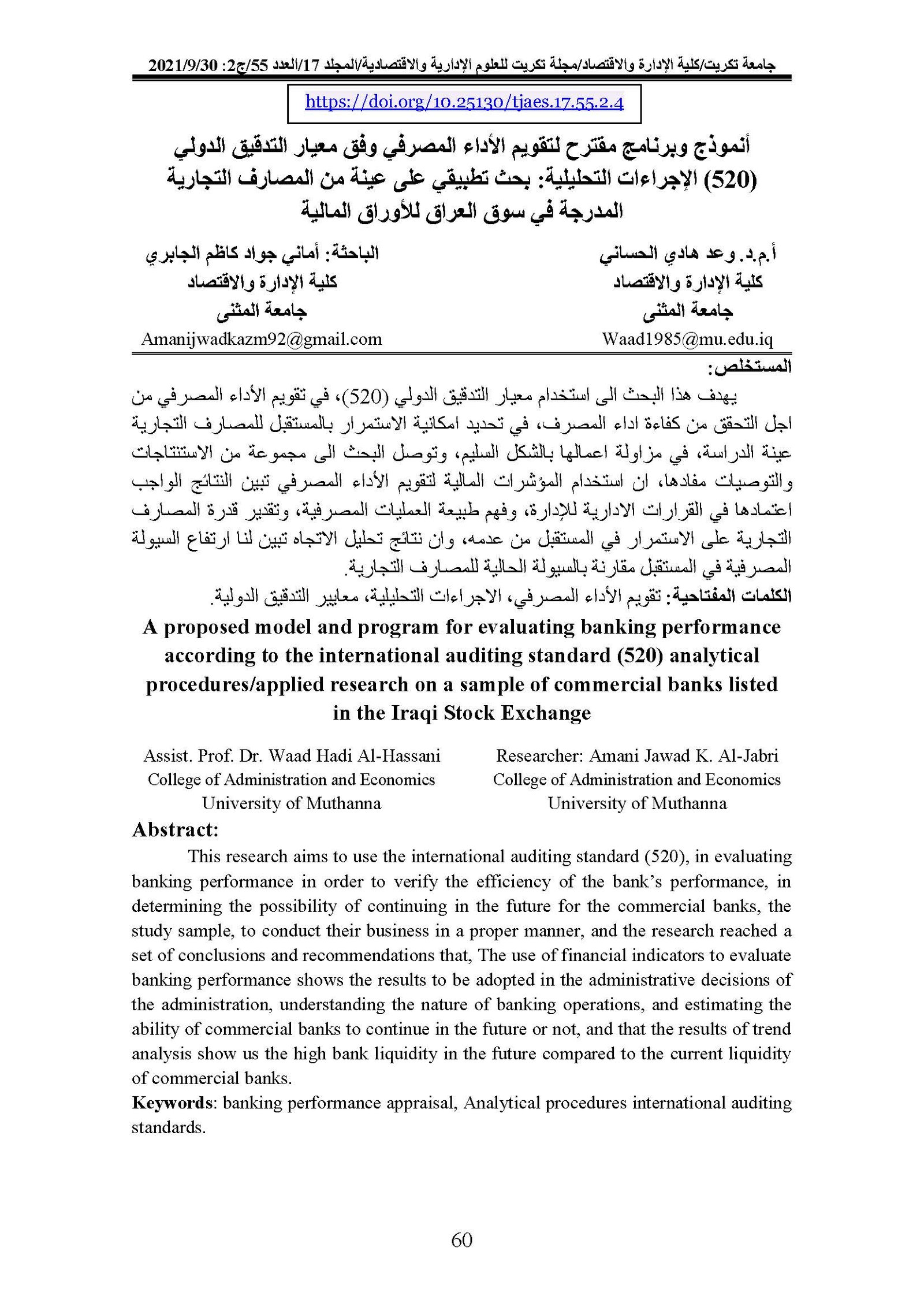 Evaluating the governance of Iraqi government banks according to the Corporate Governance guide for banks Case study of the Industrial Bank of IraqAbstract views : 0 | PDF downloads : 0Page No.: 355-370 |