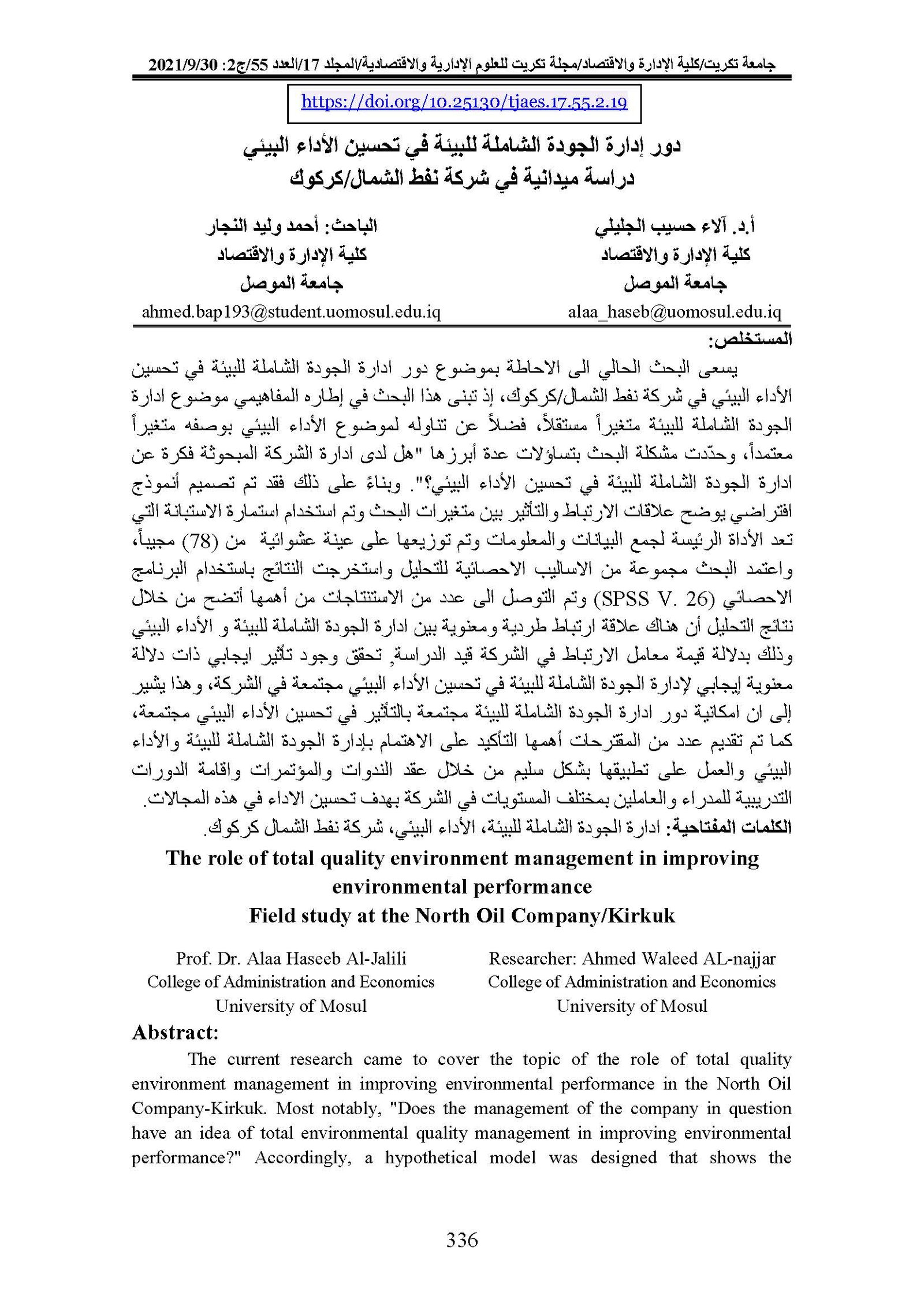 The role of total quality environment management in improving environmental performance Field study at the North Oil Company/KirkukAbstract views : 0 | PDF downloads : 0Page No.: 336-354 |