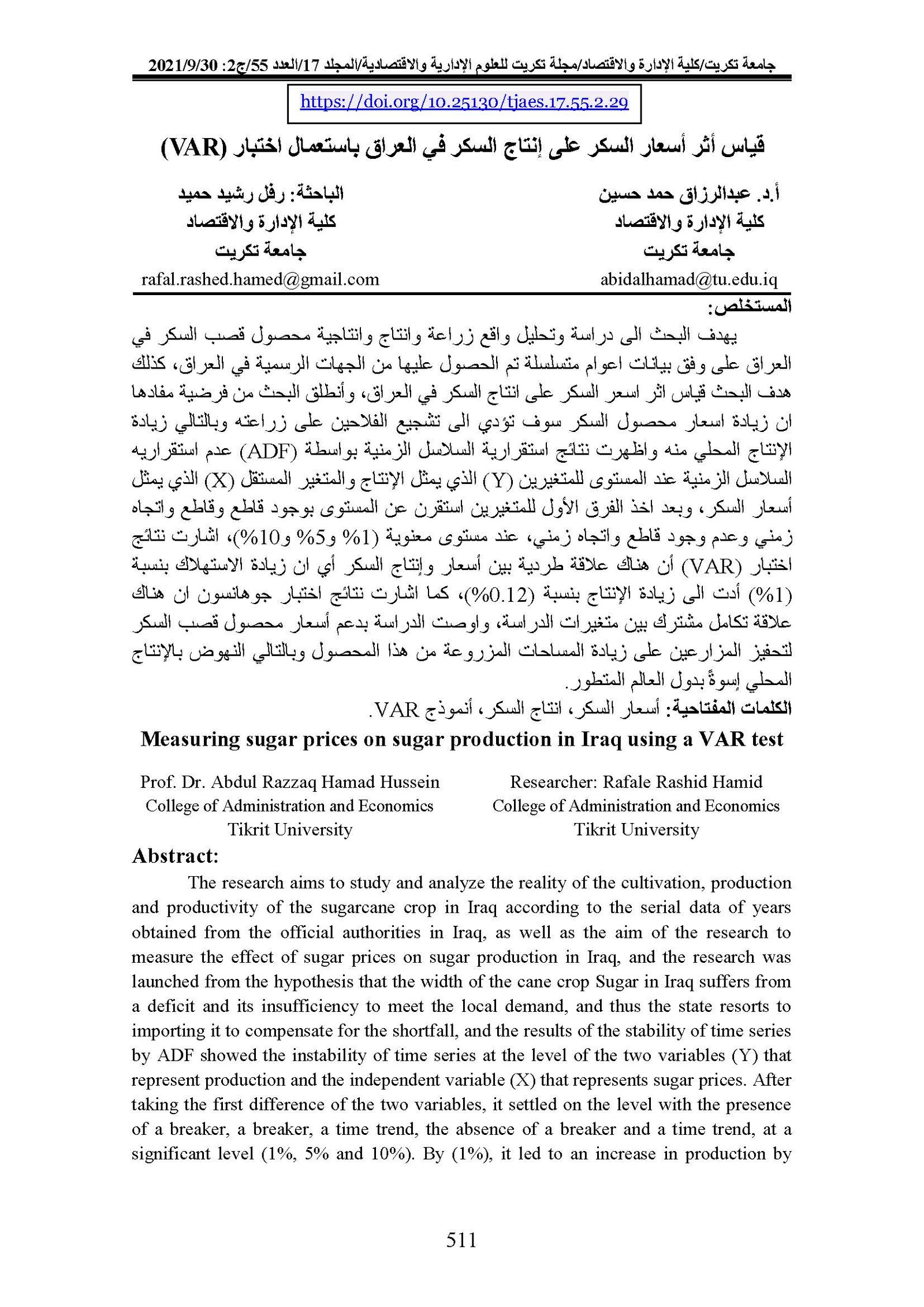 Measuring sugar prices on sugar production in Iraq using a VAR testAbstract views : 0 | PDF downloads : 0Page No.: 511-522 |