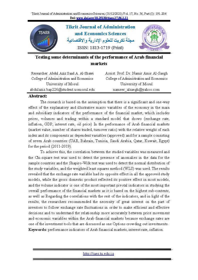Testing some determinants of th e performance of Arab financial marketsAbstract views : 0 | PDF downloads : 0Page No.: 191-204 |