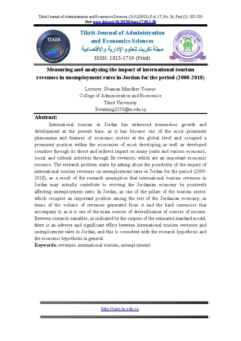 Measuring and analyzing the im pact of international tourism revenues in unemployment rates in Jordan for the period (2000-2018)Abstract views : 0 | PDF downloads : 0Page No.: 505-520 |