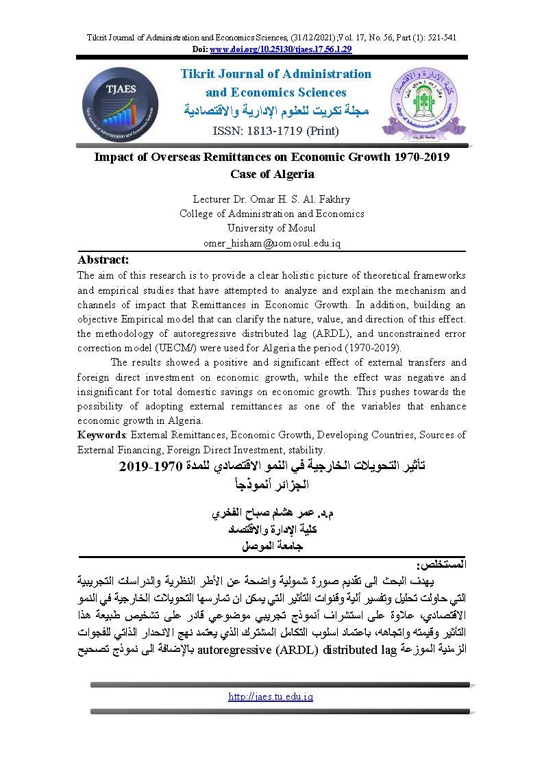 Impact of Overseas Remittances on Economic Growth 1970-2019 Case of AlgeriaAbstract views : 0 | PDF downloads : 0Page No.: 521-541 |