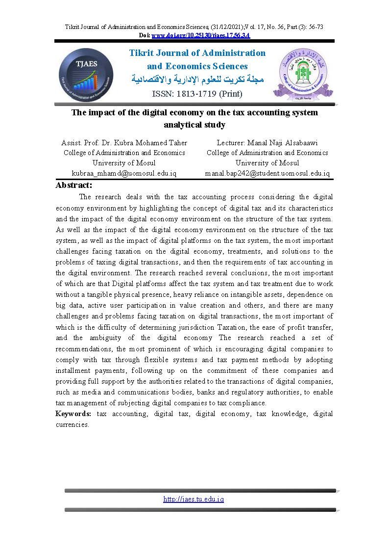 The impact of the digital economy on the tax accounting system analytical studyAbstract views : 0 | PDF downloads : 0Page No.: 56-73 |