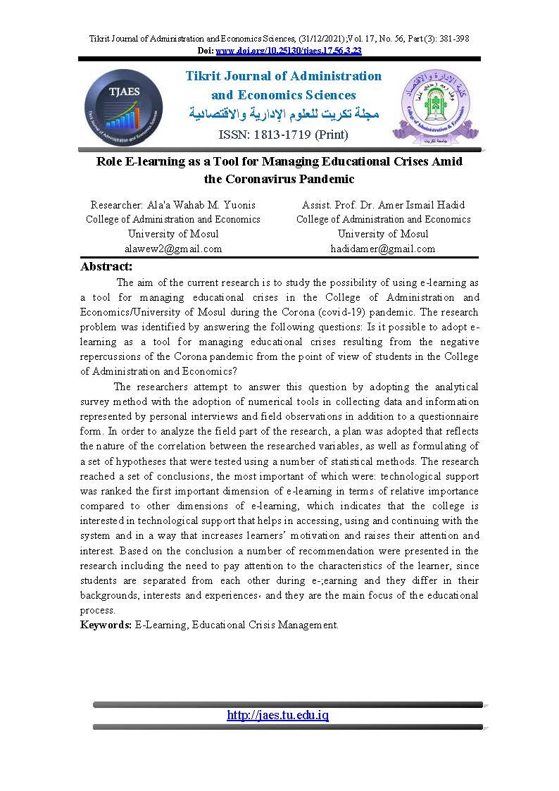 Role E-learning as a Tool for Managing Educational Crises Amid the Coronavirus PandemicAbstract views : 0 | PDF downloads : 0Page No.: 381-398 |