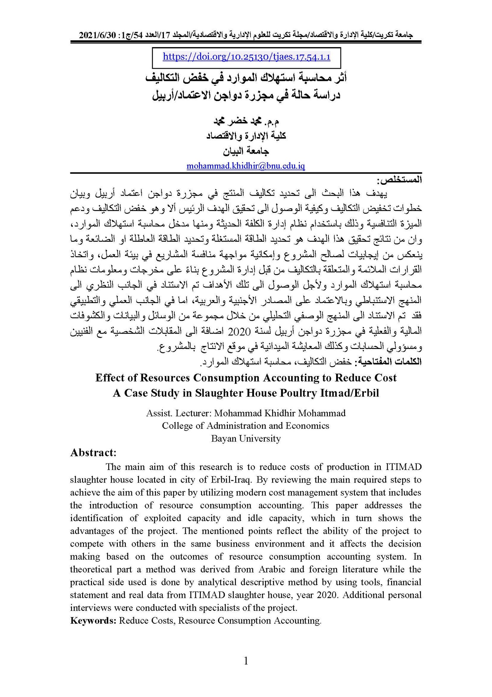 Effect of Resources Consumption Accounting to Reduce Cost A Case Study in Slaughter House Poultry Itmad/ErbilAbstract views : 0 | PDF downloads : 0Page No.: 1-18 |