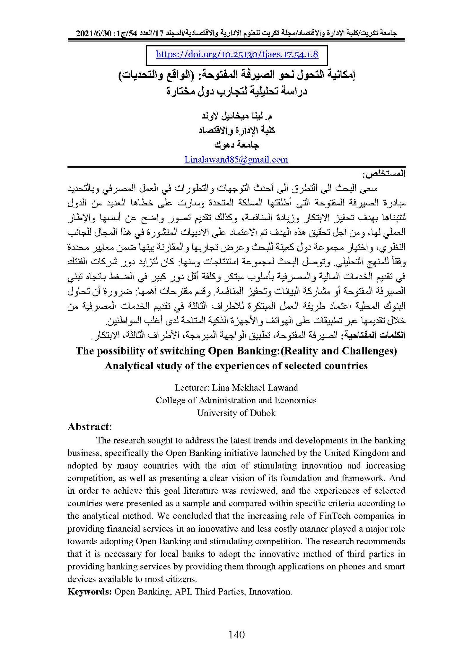 The possibility of switching Open Banking:(Reality and Challenges) Analytical study of the experiences of selected countriesAbstract views : 0 | PDF downloads : 0Page No.: 140-159 |
