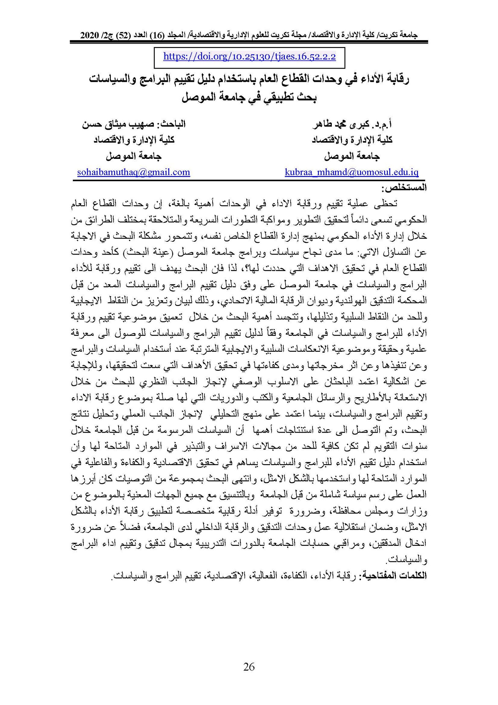 Auditing performance in public sector units using the Program and Policy Evaluation Manual Applied Research at the University of MosulAbstract views : 0 | PDF downloads : 0Page No.: 26-48 |