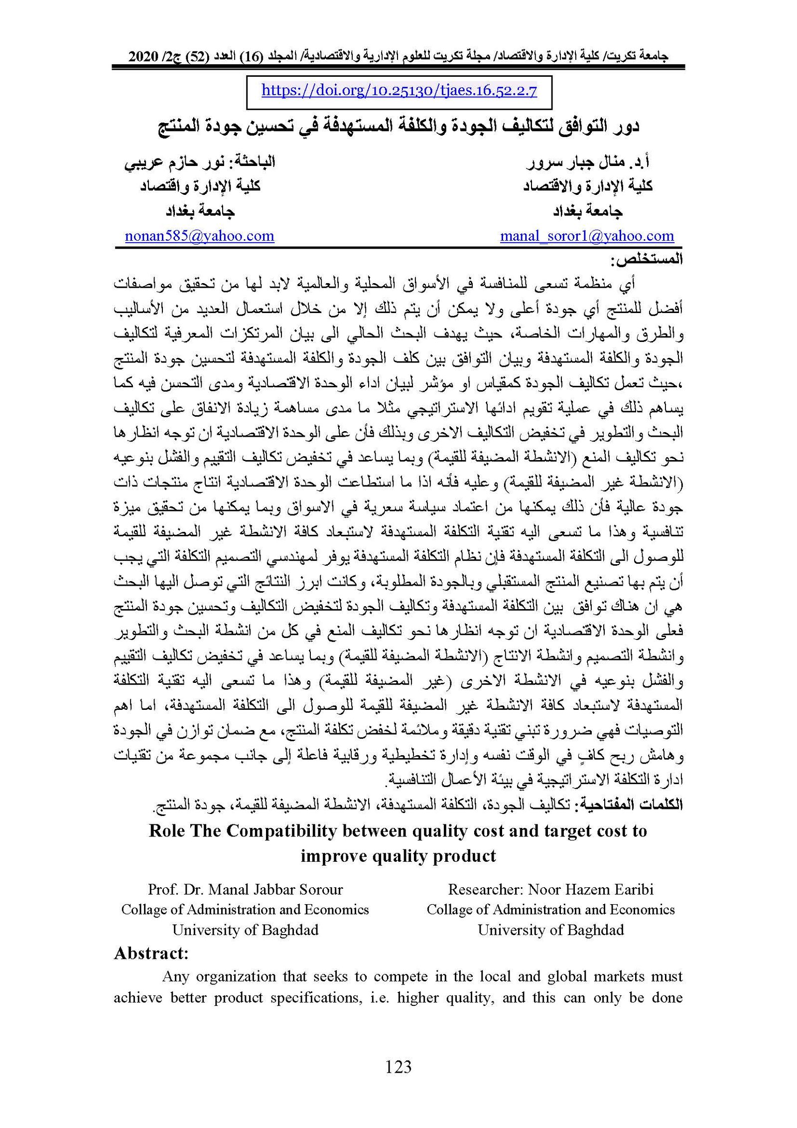 Role The Compatibility between quality cost and target cost to improve quality productAbstract views : 0 | PDF downloads : 0Page No.: 123-147 |