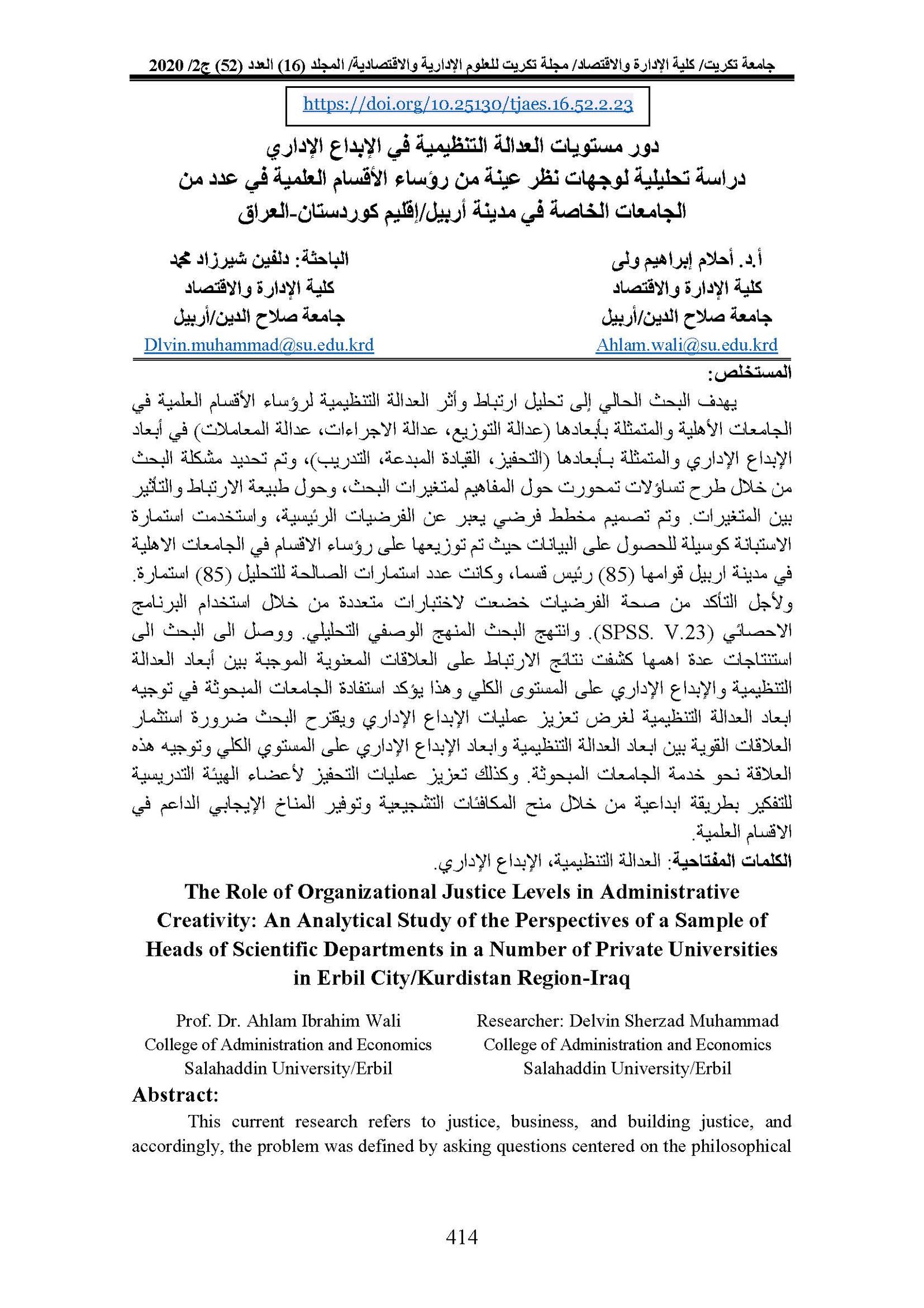 The Role of soft skills in reducing Organizational Cynicisim An analytical Research of Directors of Salahaddin University/ErbilAbstract views : 0 | PDF downloads : 0Page No.: 523-545 |