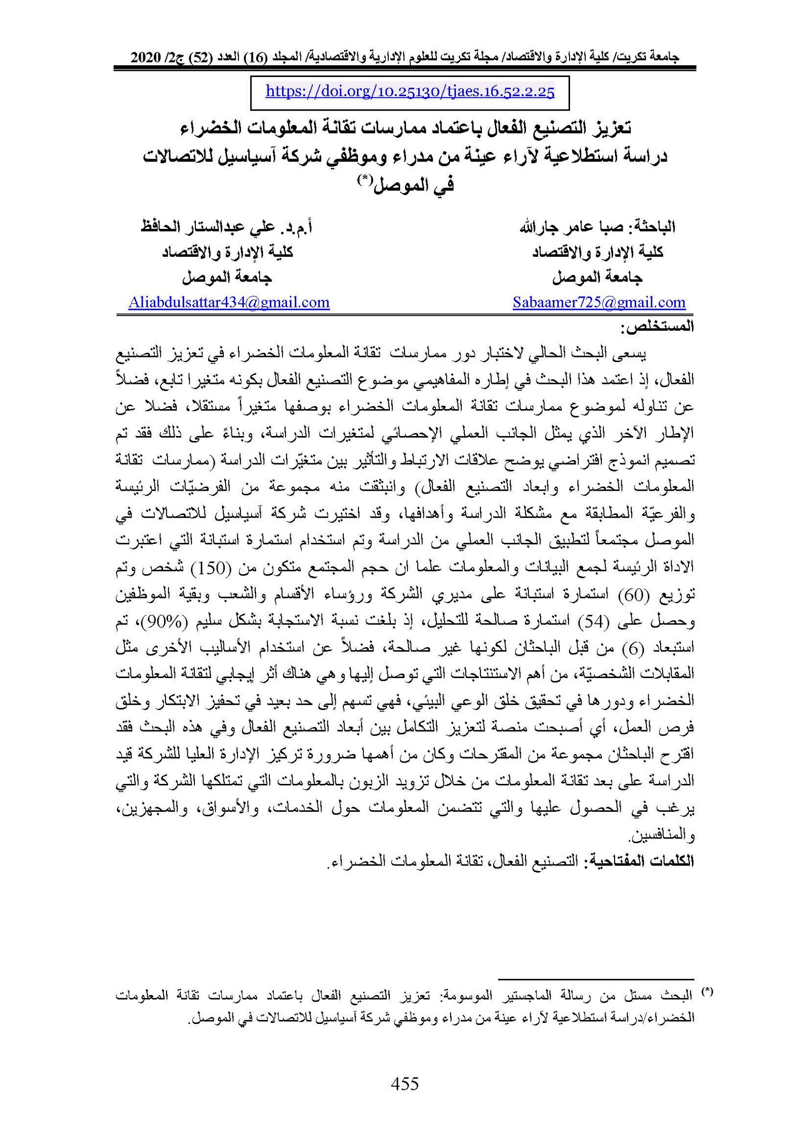 The extent to which the requirements of sustainable management are met in Nineveh Oil Authority/An exploratory study of the opinions of a sample of administrative leadersAbstract views : 0 | PDF downloads : 0Page No.: 278-292 |